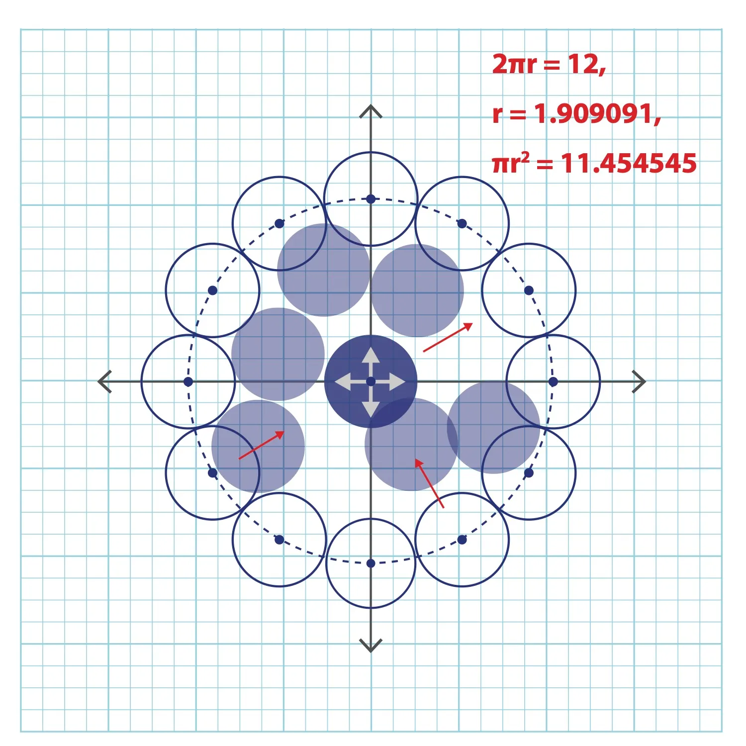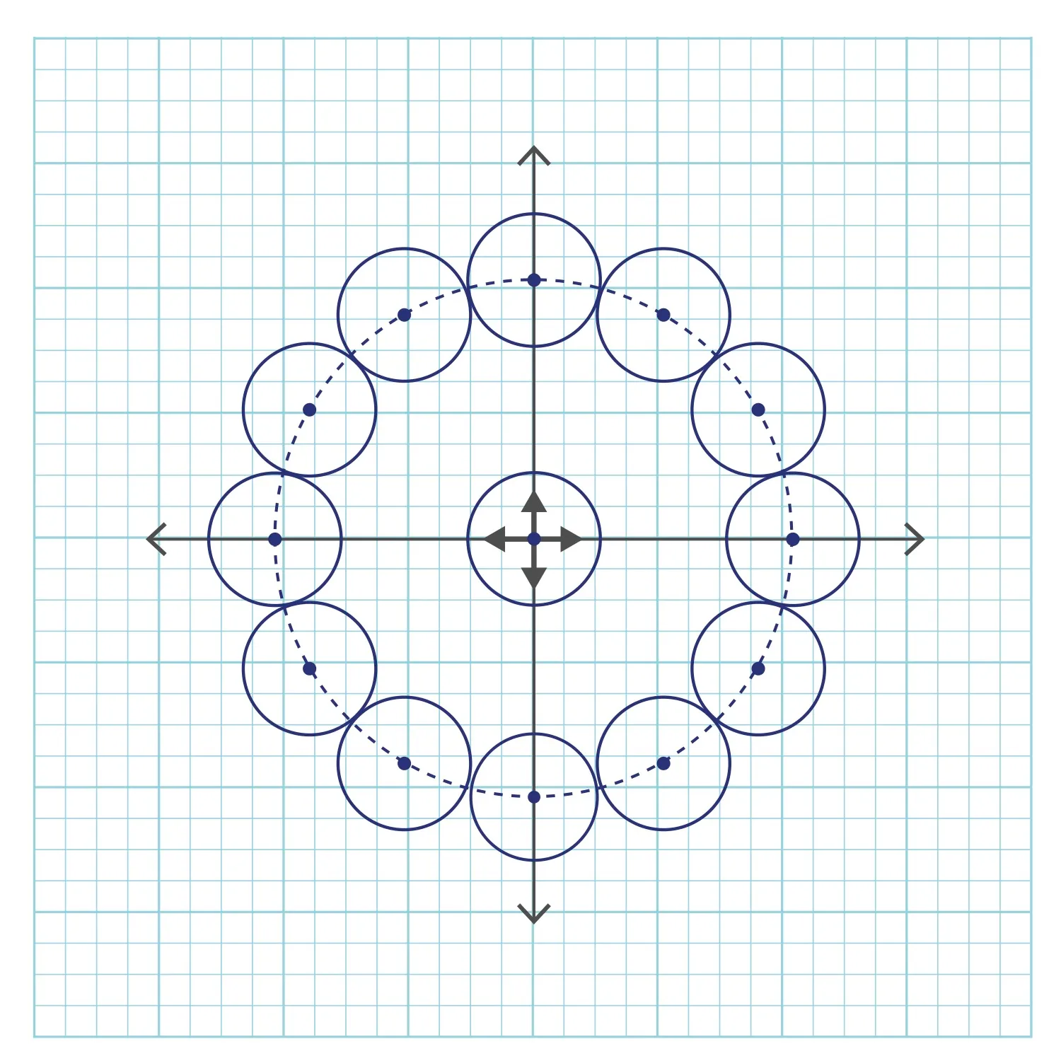 I want you to put twelve little circles representing the Higgs-Bosons equally distant from the origin of an XY axis on an ordinary trigonometrical plane.